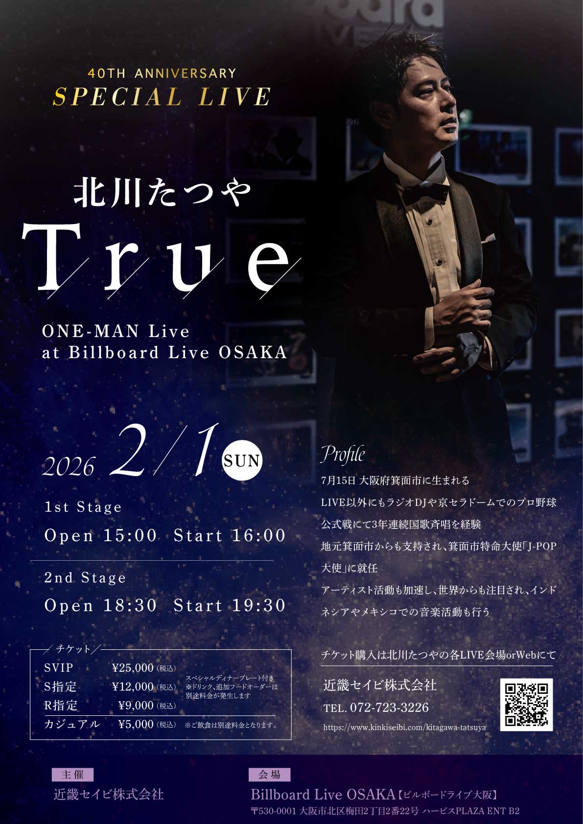 「北川たつや40TH ANNIVERSARY SPECIAL LIVE 『True』at Billboard Live OSAKA」